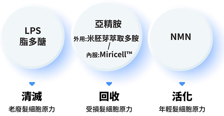 頭髮再生精華與髮根復甦髮生素不單有LPS脂多醣,還有兩種共同成分,築構恆菁免疫髮根復甦三原力,打造女士濃髮.密髮。
