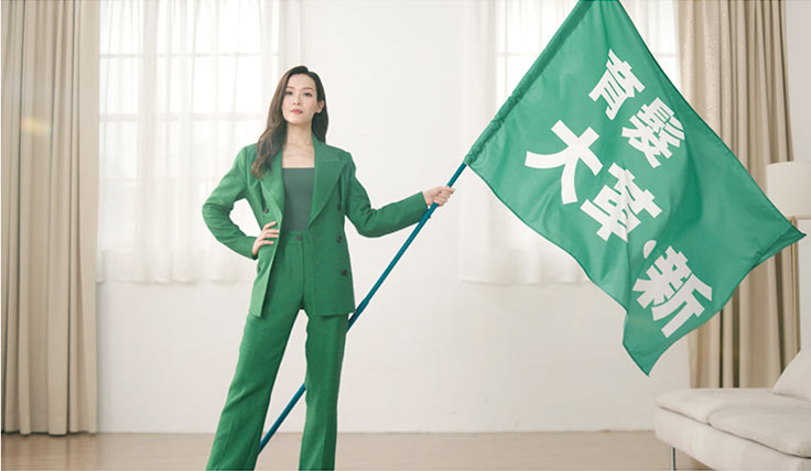 就當日拍攝現場所見,Ali依舊明艷照人,一頭秀髮更是育髮代言人的不二人選。今次廣告最高難度的部份,就是揸住並舞動一支寫住「育髮大革新」的旗幟。不要看她弱質纖纖,揸起上來完全有模有樣,將「插旗」的氣勢表現得淋漓盡致。
