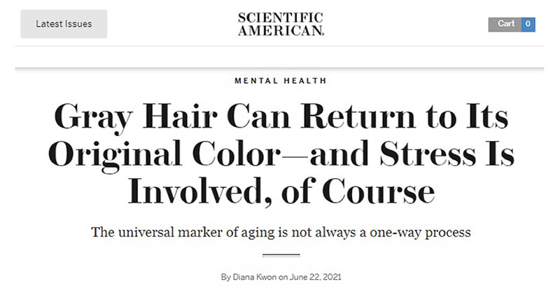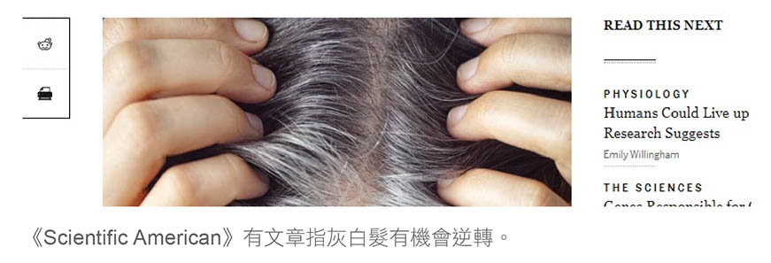 美國著名科普雜誌《Scientific American》都有篇文章提及到出現灰白髮與壓力有好大關係。
