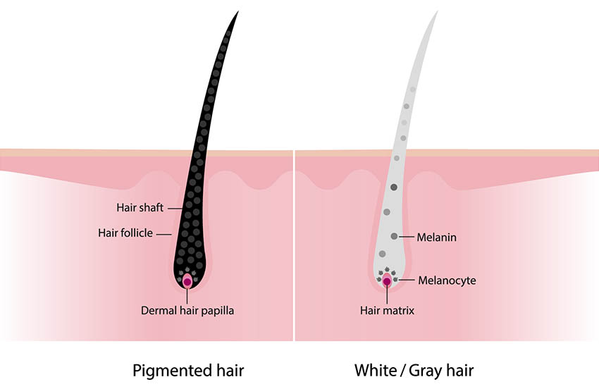 之不過,「原生色素」未必會跟你一世,會因不同因素而減少生產,除咗年紀大致毛囊退化,上述提及過嘅原因,都會加快毛囊氧化,令原生色素減少,毛囊唔夠黑色素,頭髮就會慢慢變灰,最後變白。