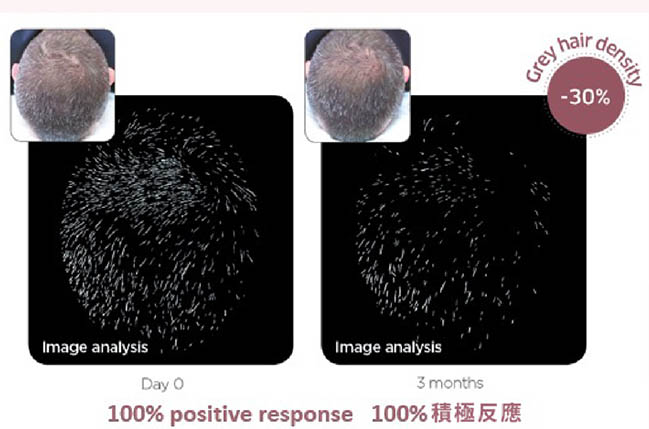 呢隻黑髮肽仲有可靠嘅數據支持,佢喺法國當地搵咗15名使用者進行3個月的臨床研究,佢哋每日使用GREYVERSE™,3個月後灰髮密度最高可以降低81%*,平均降低30%*。