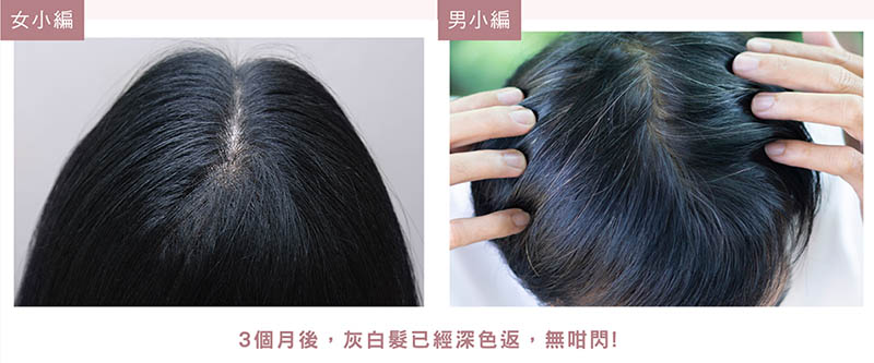 小編跟足指示搽咗3個月,頭1個月發現灰白髮嘅根部比較深色,即係話,新生頭髮已經係有返顏色。3個月後,唔少灰白髮有一截已經係深色啲,無咁閃,而且灰白髮亦無增多,個效果比小編想像中明顯呢。
