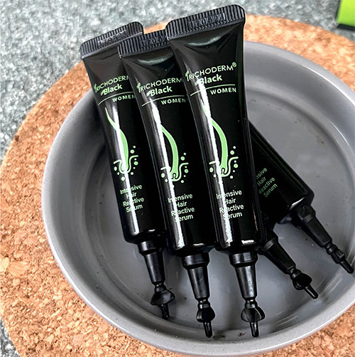見到蘭茜一頭厚髮,證明她的方法是有效的。原來蘭茜所用的頭髮再生精華,好多人都叫佢做小黑支滴滴精華,採用了「瑞士蘋果幹細胞」及「摩洛哥堅果樹幹細胞」兩大成分,它們公認擁有超強的再生能力,每日給毛囊吸收,激活毛囊幹細胞自我複製的能力,提升頭髮生命力,令頭髮不斷健康重生,解決頭髮稀疏和脫髮的問題。